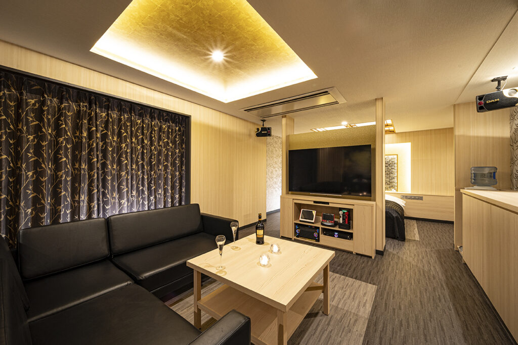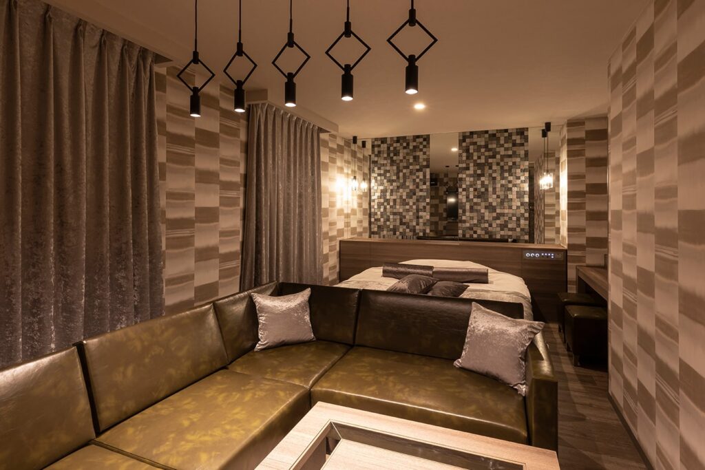 「スタイリッシュ&モダン」をテーマに、全室異なるデザインで構成されたラブホテル。サウナを完備したお部屋も、洗練された大人の隠れ家のような雰囲気です。