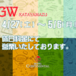 2024年4月19日 / 最終更新日 : 2024年4月23日 continentaladmin 片山津店お知らせ 【GW期間の料金・片山津】 いつもコンチネンタル片山津をご利用いただき、誠にありがとうございます。 ゴールデンウイーク期間の料金についてご案内申し上げます。 コンチネンタル片山津では、 4月27日(土)から5月5日(日)までを『土曜日料金』にて、 […]
