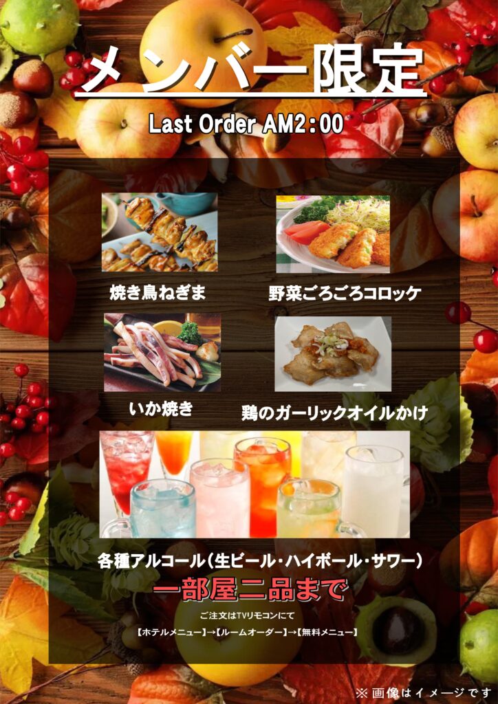 大好評のメンバー様限定無料メニューが新しくなりました。