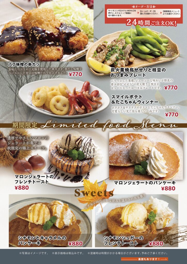 その他の食べ物・飲み物・ルームウエアなどを含め、ご利用いただくすべてのお客様へのサービスとなります。そして、寒くなってきたこの時期、入浴剤の季節限定枠に『ホット・スパイシー』が加わりました。